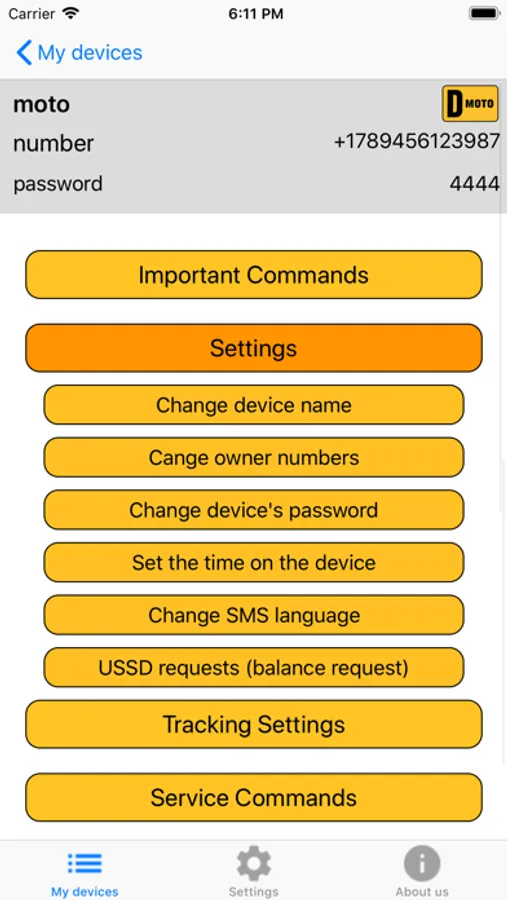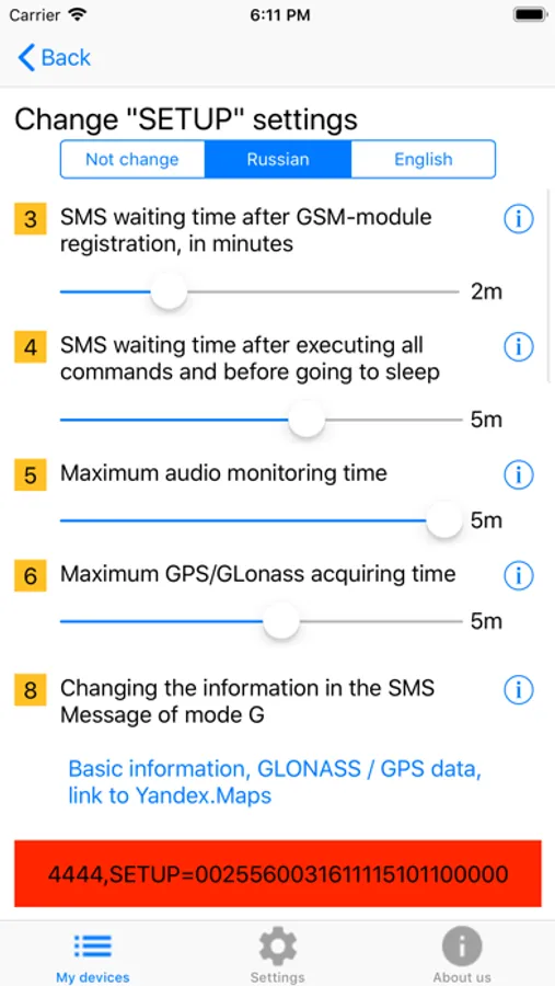 The application allows you to create SMS commands for devices in a user-friendly form and send them through the selected SIM card of the smartphone.