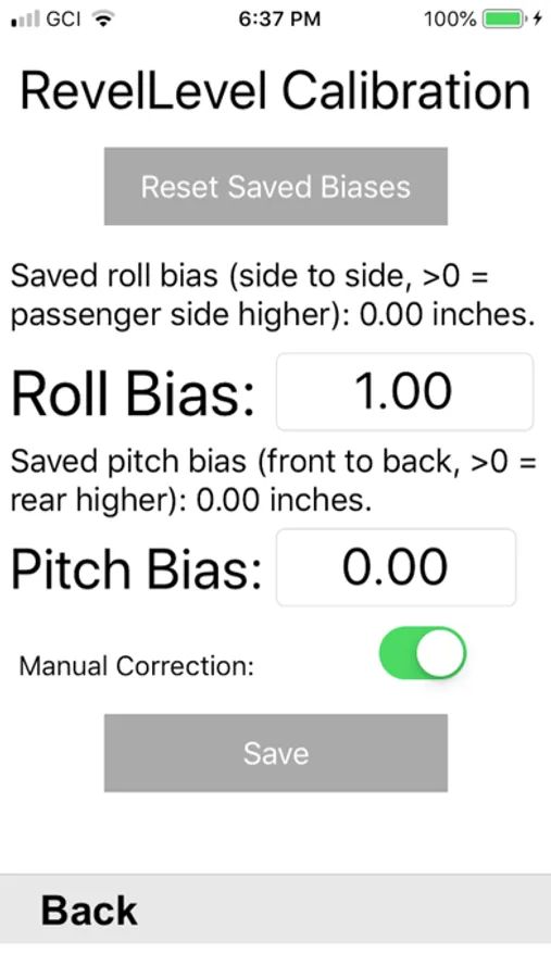 Sounds can be used to level your van with this app. You can set a level tolerance value and chose a sound pair. One sound will be played if you are out of the level tolerance range. Another sound will play if you are within the tolerance level. For example: You can choose a level tolerance of 2 inches. Then make sure the audible icon on the upper left of the main display is activated and put your phone on a flat surface. Get in the driver's seat and start moving your vehicle. The app will tell you when you are out of and within the 2 inch level tolerance limit.
