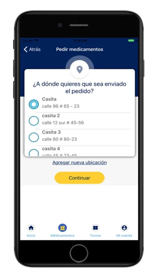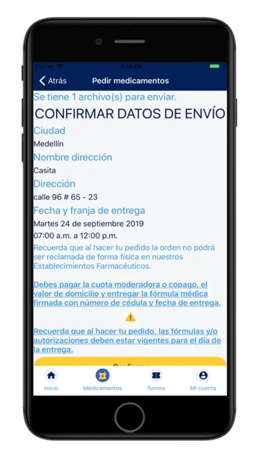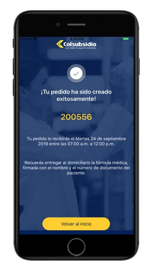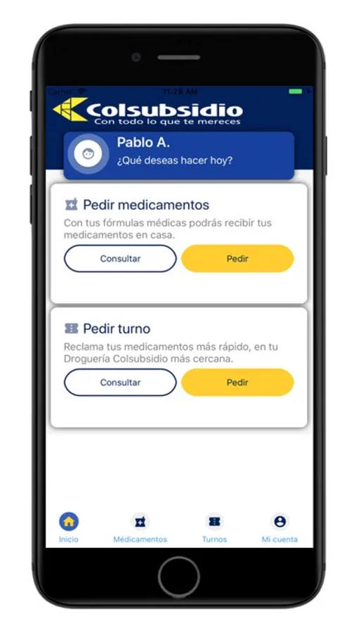 Con la Aplicación Medicamentos Colsubsidio, podrá pedir a domicilio los medicamentos formulados por su médico tratante. En tres sencillos pasos recibiremos su pedido, y agendaremos al domiciliario, o sí así lo prefiere, podrá solicitar su turno para la entrega presencial de sus medicamentos en el Servicio Farmacéutico más cercano a su ubicación, y que cuente con la red dispuesta para la entrega. También podrá consultar el estado de su pedido en tiempo real y recibir alertas sobre las novedades que presente su solicitud. Evite las filas de los dispensarios, vaya tranquilo a casa; su comodidad es nuestra prioridad.