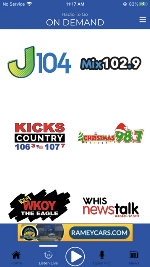 The My Radio To Go App brings you the live streams of J104, Kicks Country and all the stations of First Media Services. Get on-air and let your voice be heard with the "Open Mic" feature where you can send in music requests, talk topics and make special contest submissions.