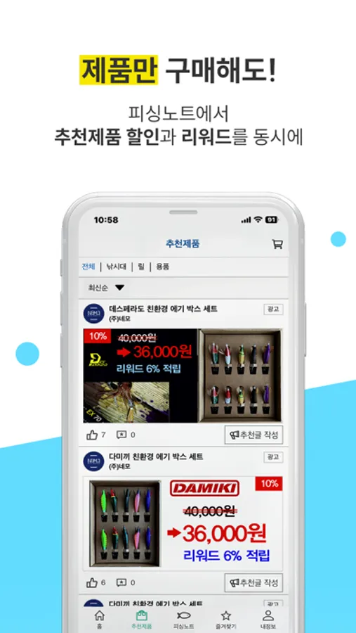 - 회원님에게 유용한 낚시 관련 제품 안내 기능