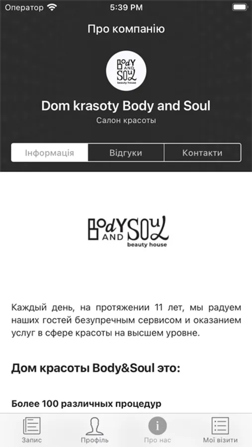 Приложение дома красоты и мед. центра Body&Soul разрабатывалось специально для удобства наших клиентов.