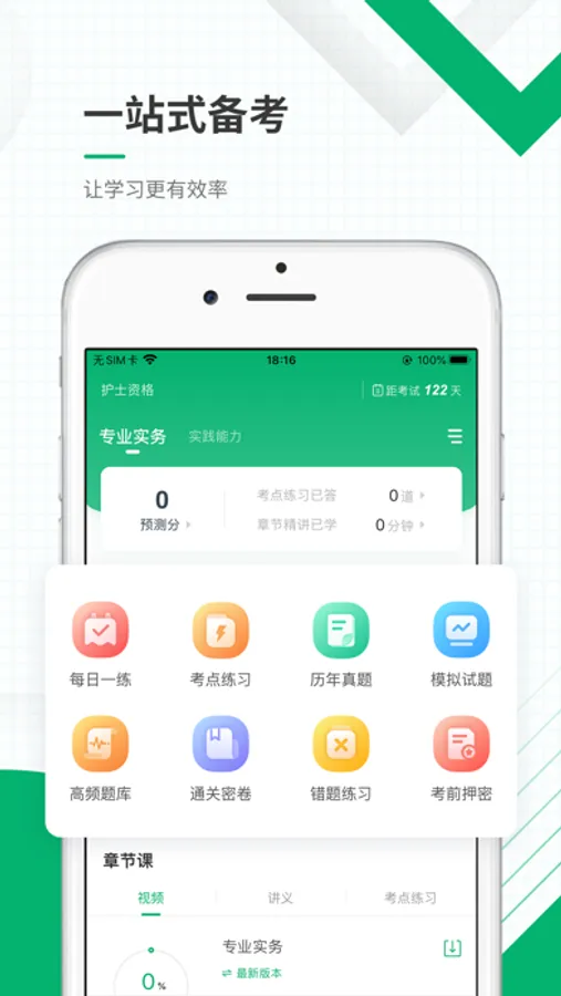 护士资格证准题库有试题视频解析、章节强化训练、高频考点、历年真题