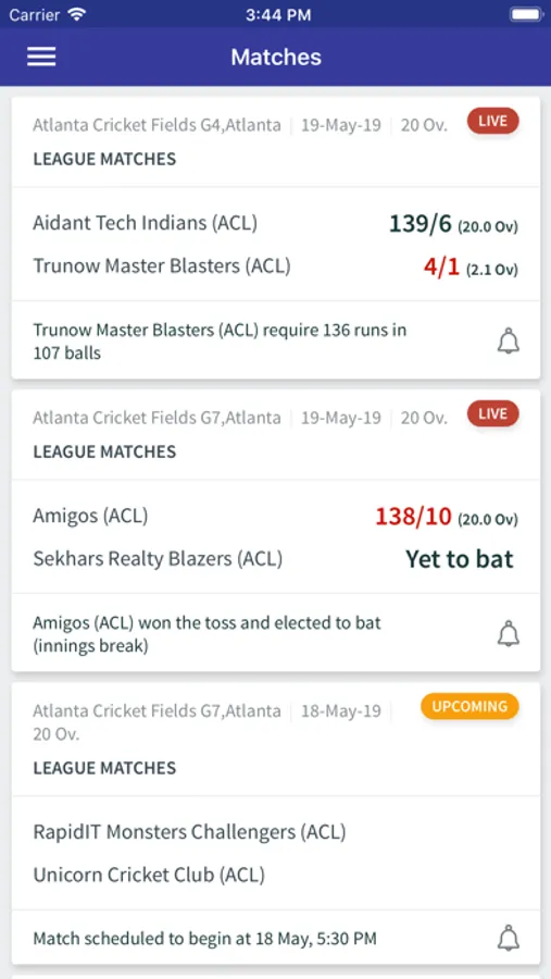 Atlanta Cricket League Scoring also provides subscription based Pro features.