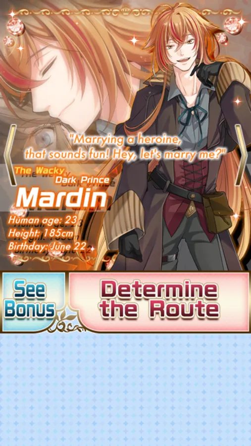 He's intrigued by the idea of marrying a Heroine.