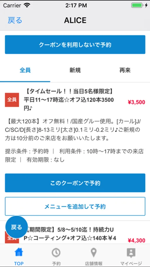 お得なクーポンが配信されます。ネット予約時にクーポン利用での予約も可能なので来店時もスムーズに施術頂けます。