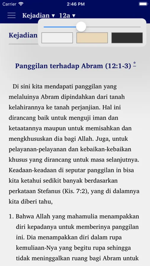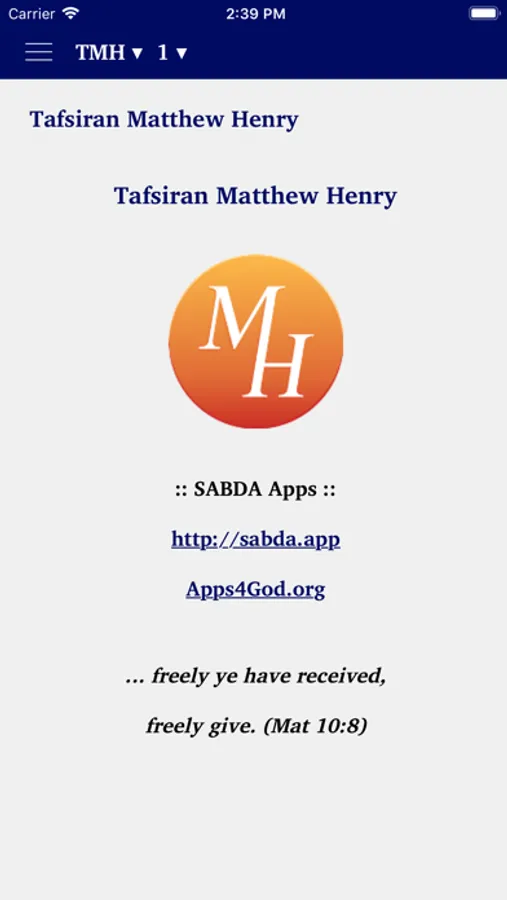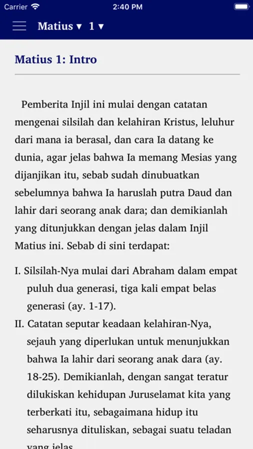 • Menu / Navigasi: Drop down untuk akses cepat ke tafsiran kitab yang diinginkan.