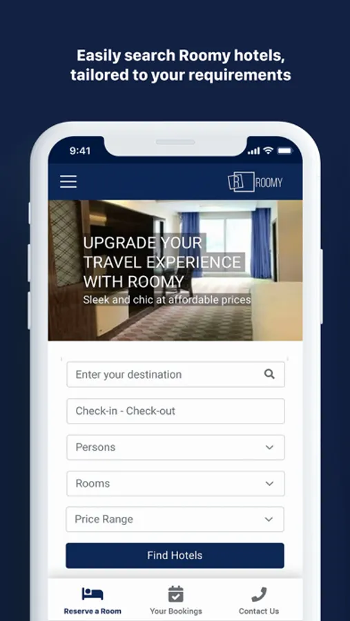 The Roomy booking app lets you book rooms and manage your stay from the tips of your fingers. With real time availability and pricing information; location, rates, amenities and travelling dates based search filters; online payments and check-ins, and absolutely free download and use, the app lets you compare and select properties according to your budget and needs, and make reservations fast in a few simple steps,.