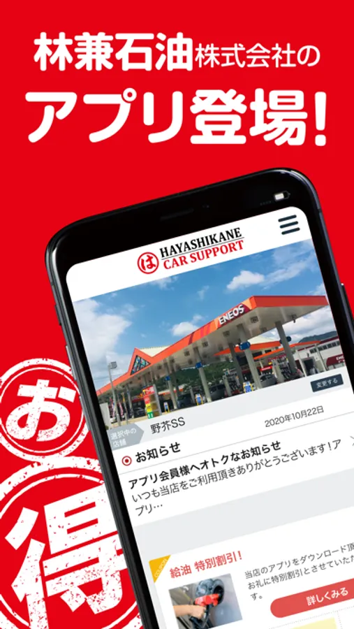 お客様に安心・充実なカーライフをお過ごしいただけるよう林兼石油株式会社のアプリ「ハヤシカネ カーライフサポート」を通して各種サービスを提供いたします。