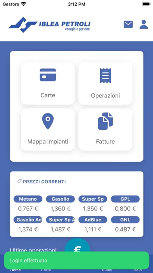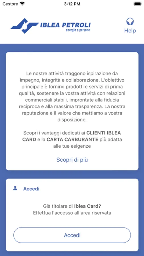L'applicazione permette di gestire le carte fuel Iblea Card.