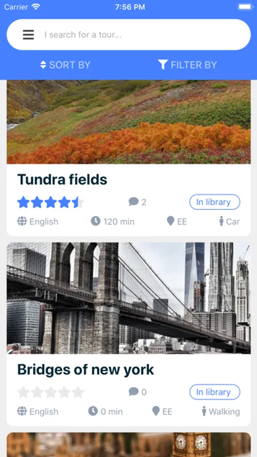 * travelers, who can find, follow, rate content creators and access their tours