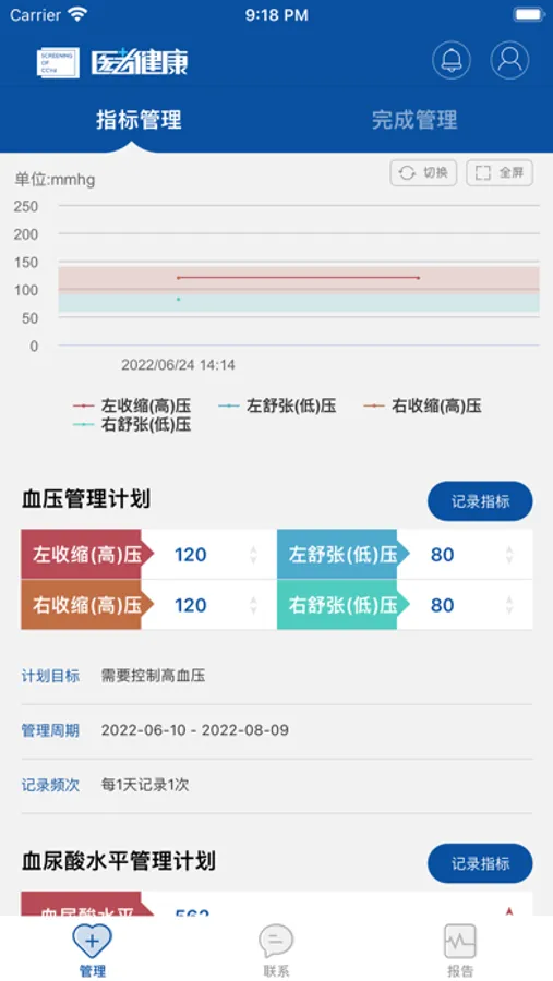 围绕客户关键指标出具定制化管理方案,根据管理方案定时监管关键指标,指标异常提醒以及用药指导。结合运动和营养方案,多维度控制关键指标的健康发展。