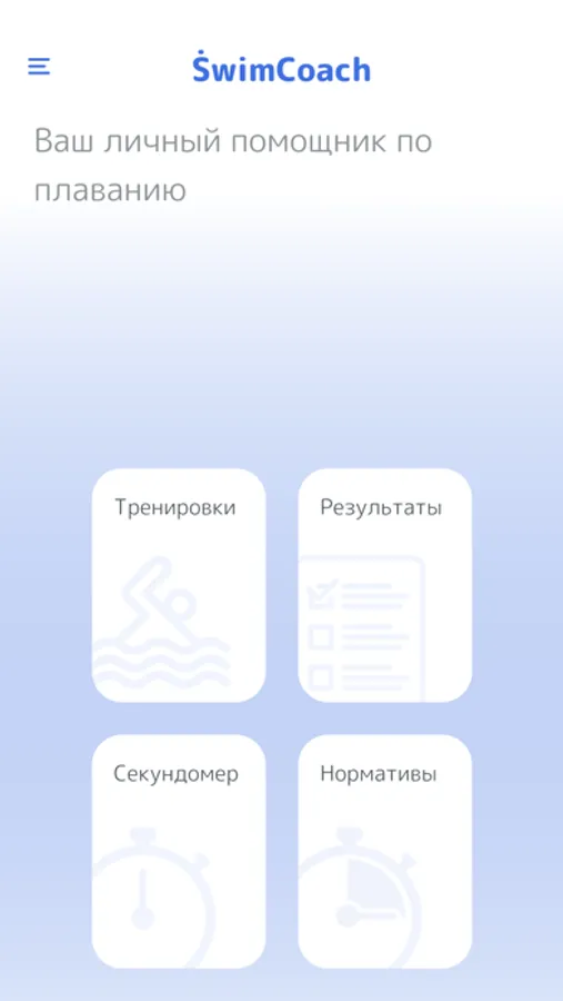 Приложение включает в себя правила и нормативы по плаванию, личный кабинет пользователя, создание и редактирования тренировок, встроенный секундомер (обычный и четырехстрелочный, позволяющий провести тренировку в заданном темпе), форму протеста, возможность сохранять результаты с сортировкой и фильтрами.