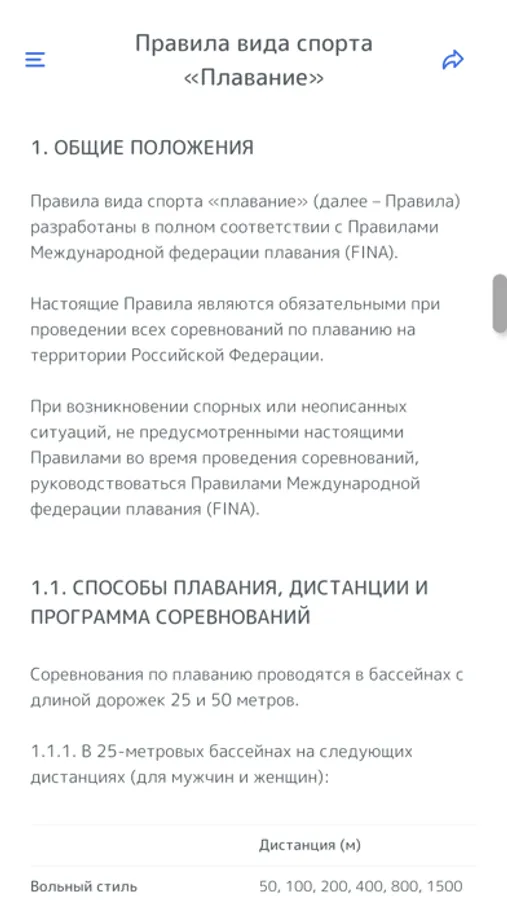 • Быстрый доступ к нормативам и требованиям в соответствии с правилами Международной федерации плавания (FINA)