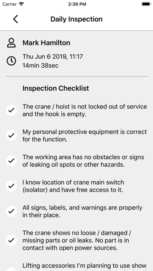 Konecranes CheckApp is a digitalized and cost-effective way for overhead crane operators to record daily or pre-shift inspection information. The daily inspection is an operator’s own assessment of the condition of an asset and environment for safe use. Daily inspections are statutory requirement in several countries and good practice for the safe operation of lifting equipment.