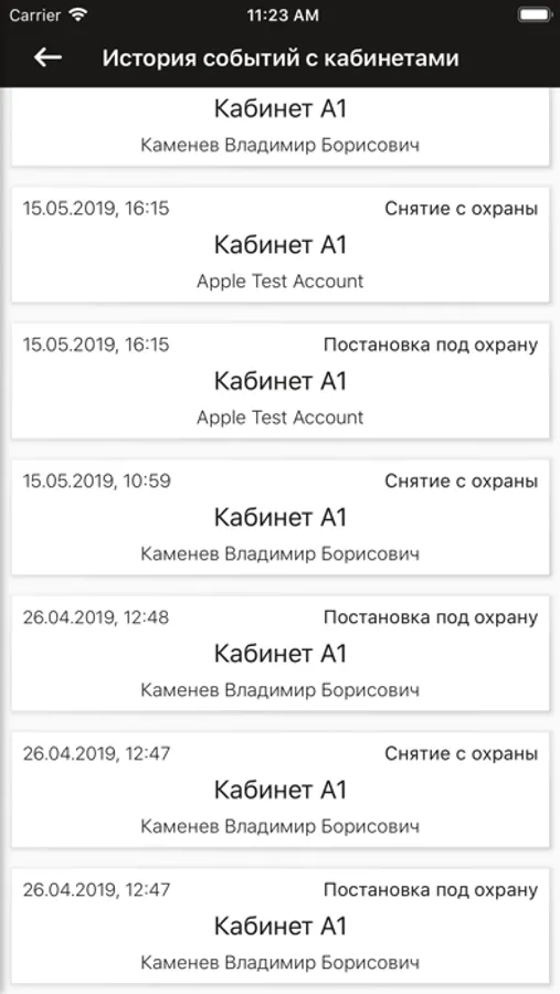-Уведомления о постановке и снятии кабинета с охраны через push-уведомления.