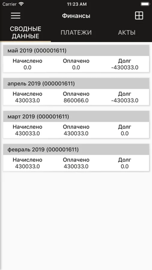 -Просмотр финансовой информации(платежи, акты, сводная таблица)