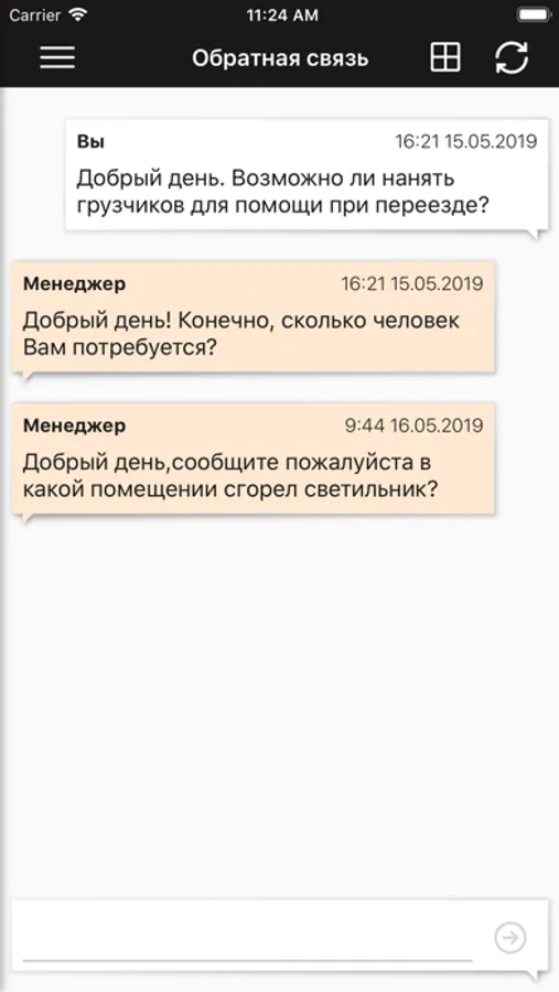 -Отправка сервисных заявок (уборка, сантехника, электрика, климат и .т.д.)