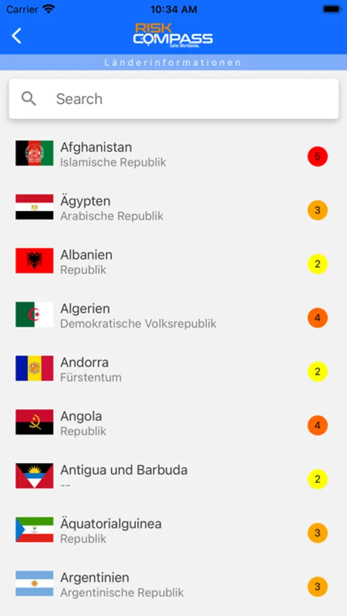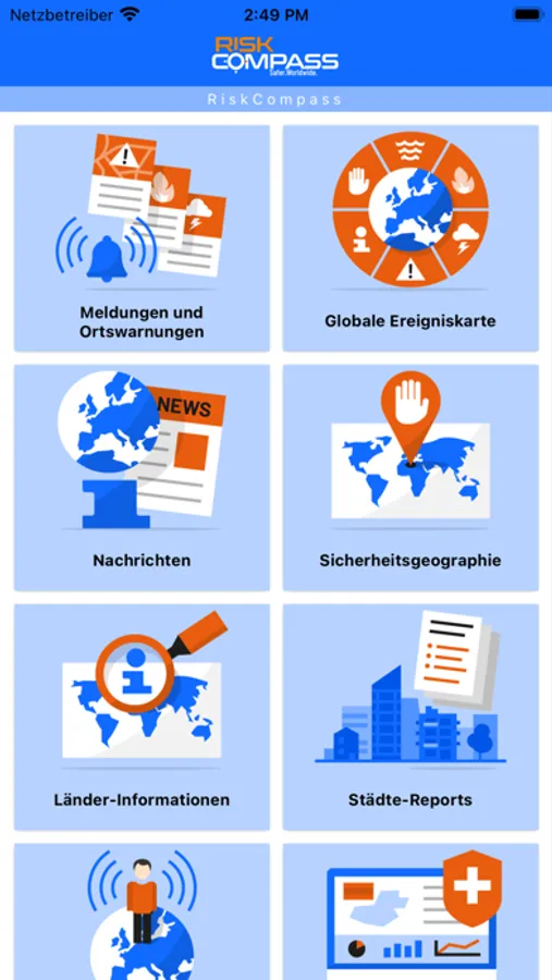Egal, ob auf Inlands- oder Auslandsreisen, die RiskCompass-App informiert Dich schon vor der Reise über alle sicherheitsrelevanten Fakten und warnt während der Reise vor Risiken und Gefahren, verbessert Deine Sicherheit und gibt Dir ein besseres Gefühl auch an unbekannten Orten.