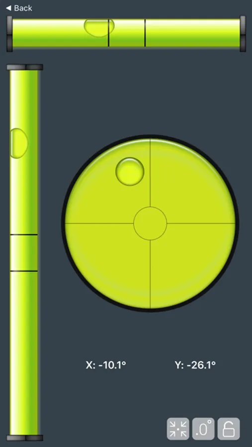 - regular spirit level (bubble level, libella) - works like a traditional bubble level tool, place your smartphone or tablet, on the surface or on the object to be measured or set at any angle,