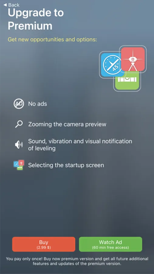 - innovative laser leveling / laser pointer - using built-in sensors (gyroscope and accelerometer), camera and extended / augmented reality, helps you to determine the vertical and horizontal levels around you,