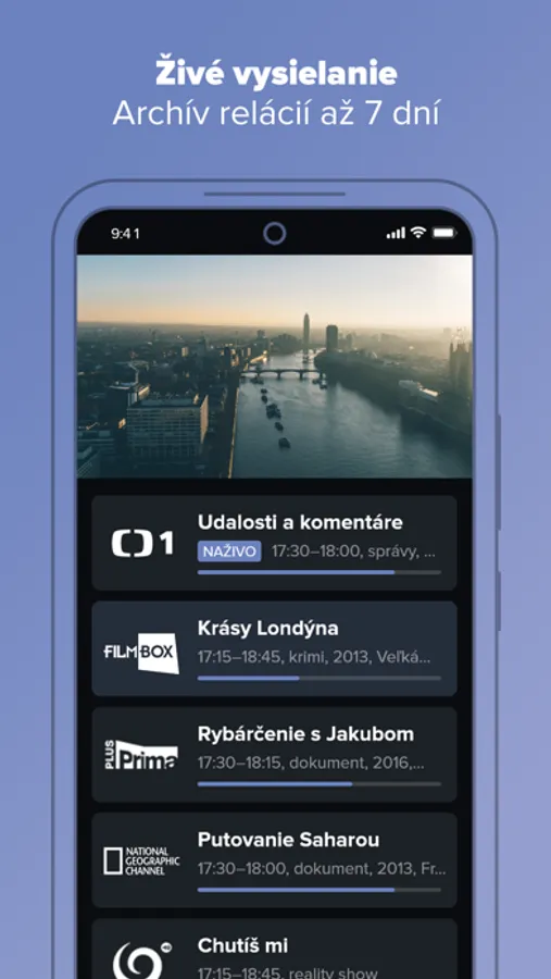 - Živé televízne vysielanie s možnosťou prehrania od začiatku
