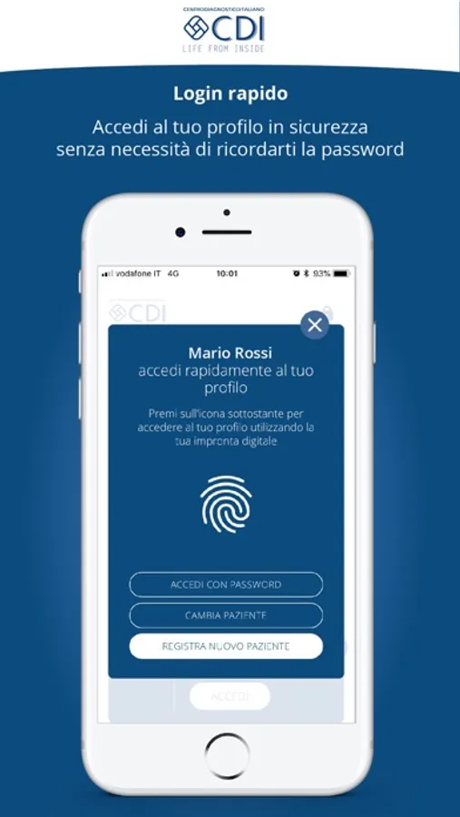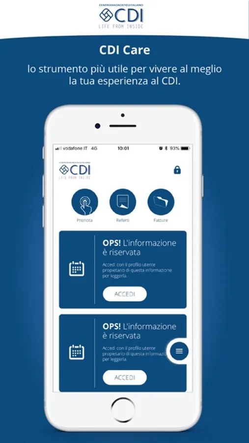 Accesso: scarica l’app e accedi con le credenziali di ilmiocdi. Se sei un nuovo utente puoi registrarti tramite l'app.Se desideri accedere a tutti i servizi CDI, richiedi l’attivazione presso le nostre sedi.