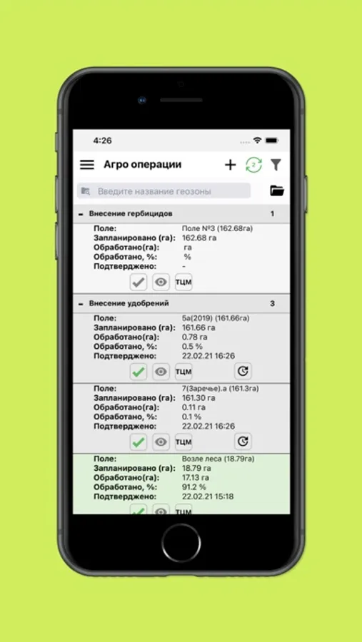 Приложение создано для пользователей IoT платформы Агроконтроль (http://agrocontrol.net) для web мониторинга сельхозтехники полей, агроскаутинга, планирования, учета и анализа полевых работ, контроля топлива и урожая. Приложение полностью поддерживает оффлайн режим работы. Функциональность позволяет отобразить карту полей, парк техники, которая оборудована GPS трекерами. Вся техника в случае движения, перемещается также и в приложении, по каждому транспортному средству можно открыть информацию по датчикам и увидеть скорость движения, топливо и прочие данные. В любой момент, агроном с интернетом или без, может определить, где техника работает и в каких полях. Агроном, перемещаясь по полям или любой другой пользователь, включив GPS на смартфоне, на карте видит свое местоположение, направление движения, а также свои поля и технику в одном окне.