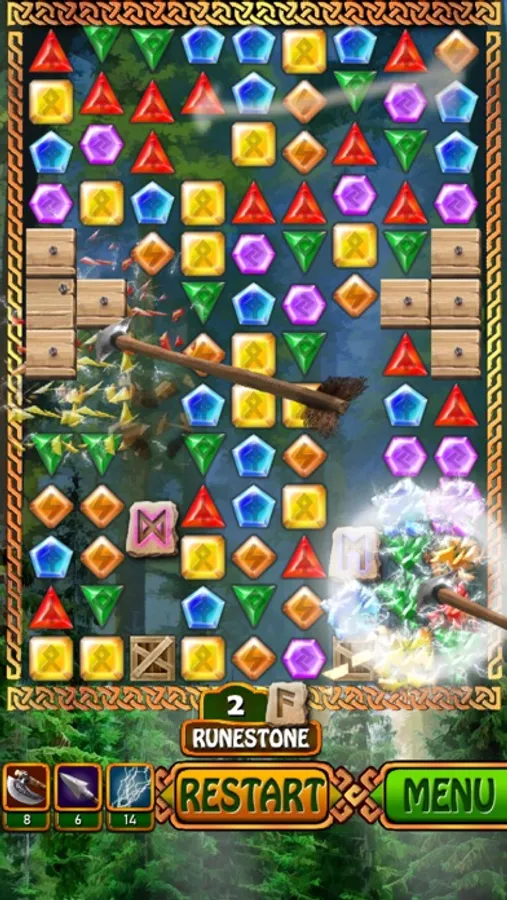 Collect gems, earn more points and get the opportunity to use help from the axe, arrows and magic.