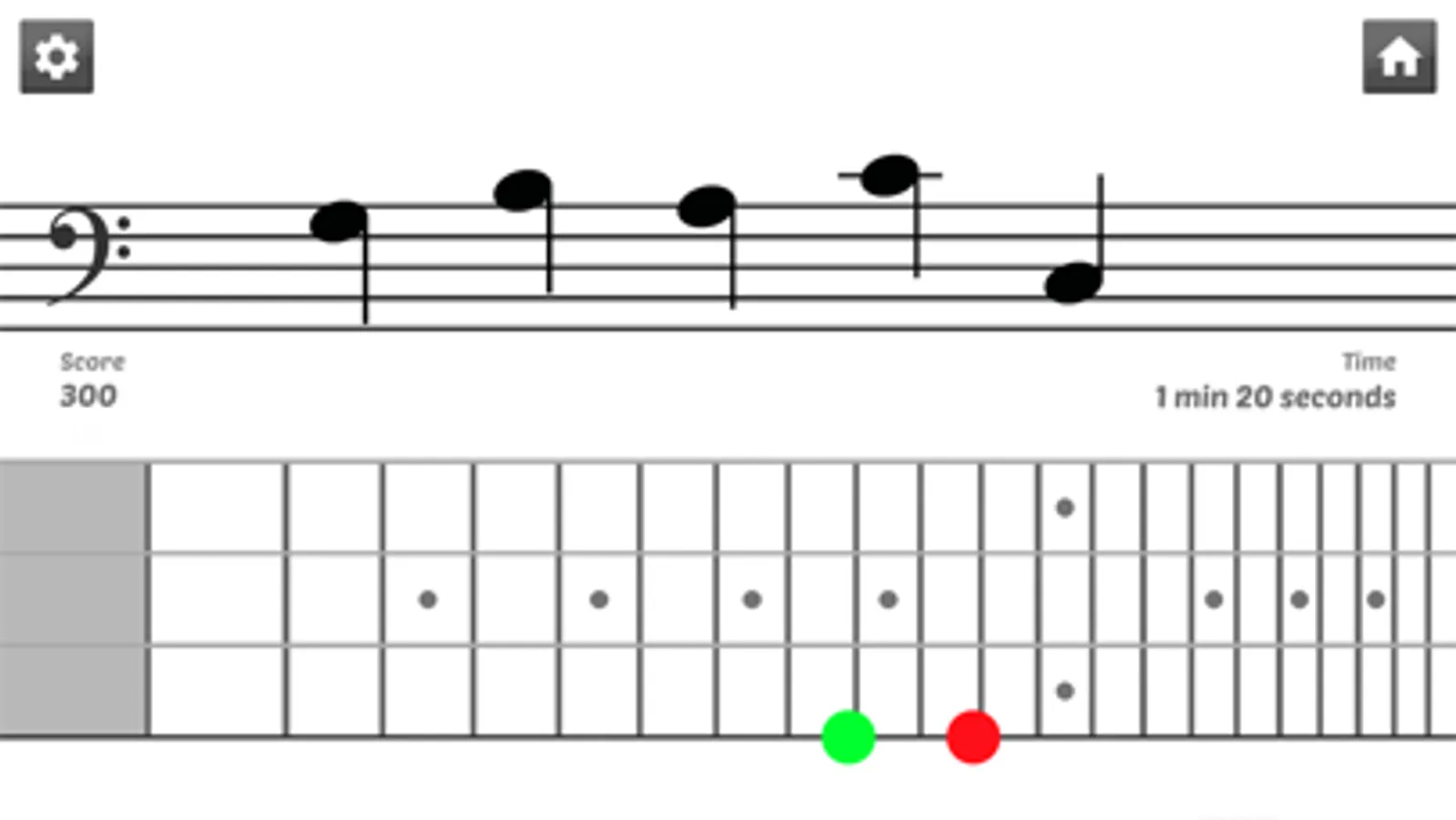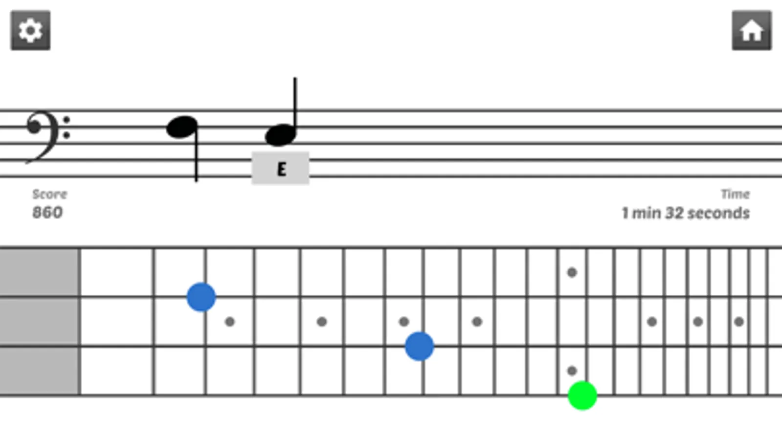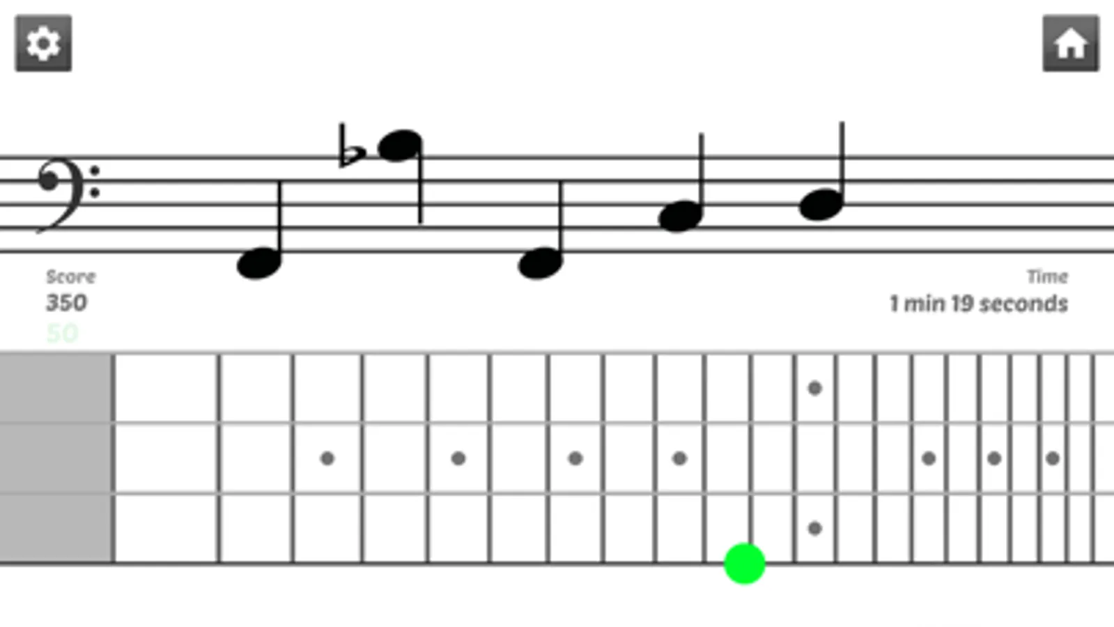 Develop your speed and accuracy in reading sheet music by identifying random music notes in timed sessions: A note is displayed on the music sheet, just tap the right string(s) and fret(s) on the fretboard of the virtual bass (manage multiple correct answers).