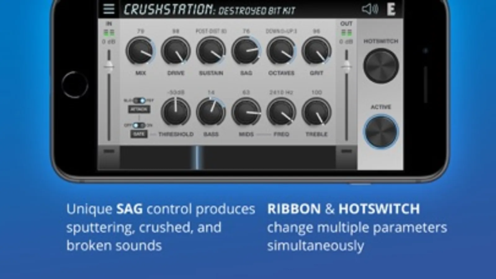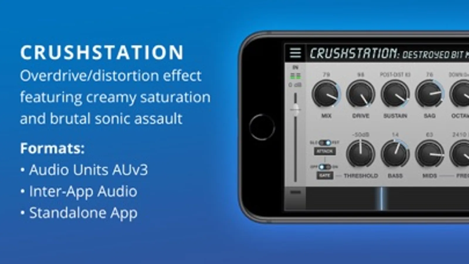 CrushStation is an overdrive/distortion effects plug-in with controls that drive your tone anywhere from a creamy saturation to a brutal sonic assault, with everything in between. Originally from the Eventide H9 Harmonizer pedal, CrushStation has been refined for experimentation on numerous sound sources from your iPhone or iPad. Crush some octaves into the mix, or turn up the Sag to bring the whole sound to its knees. An added bonus, CrushStation is a true stereo distortion.