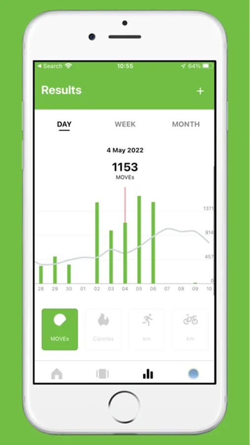 Log MOVEs manually or sync with other apps such as Apple Health, Fitbit, Garmin, MapMyFitness, MyFit-nessPal, Polar, RunKeeper, Strava, Swimtag and Withings.
