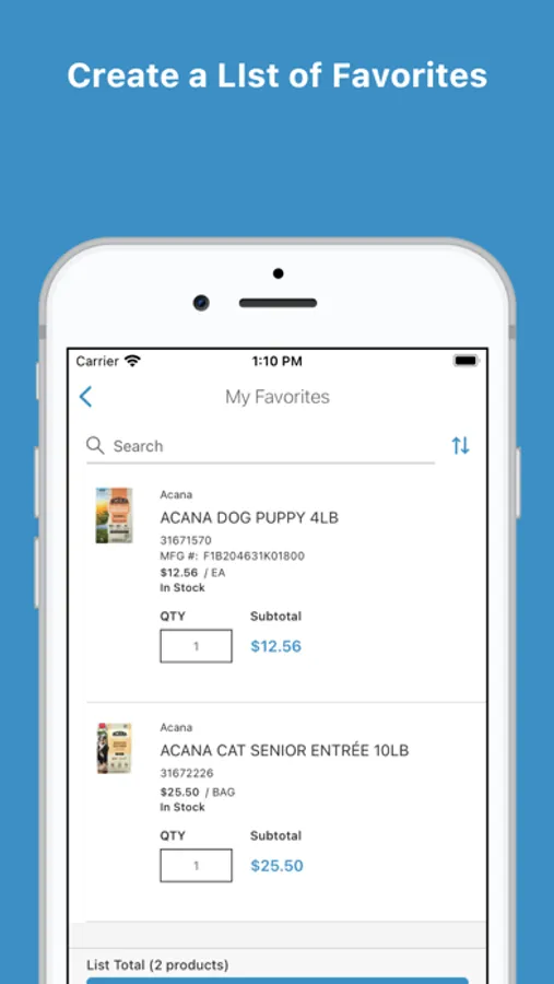 - Search your item catalog by name, brand, item number, and UPC or scan barcodes for quick item retrieval.