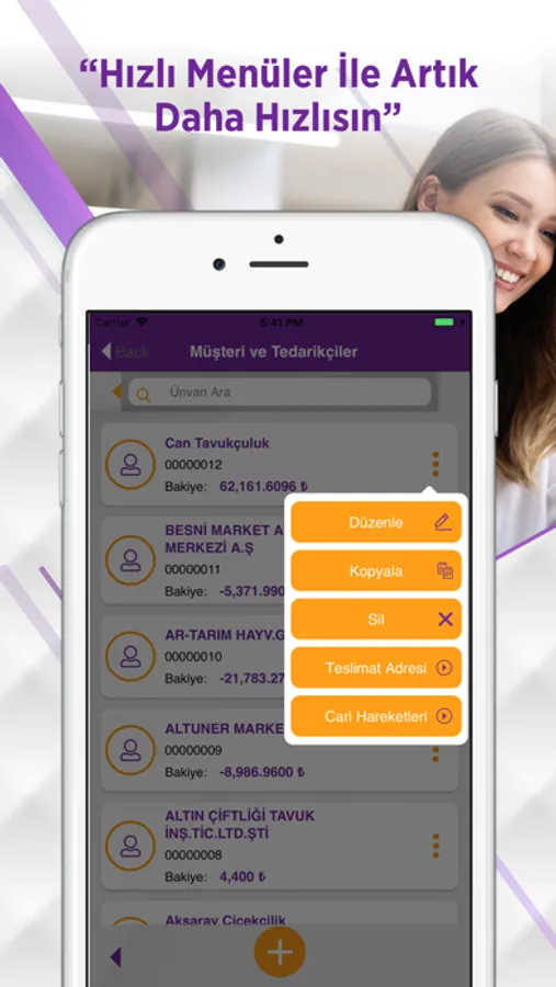 Müşteri ve Tedarikçilerinizi kolayca tanımlayabilir ilk çalışma borç/alacak bakiyeleri belirleyebilirsiniz. Sistemin size sunduğu Excel şablonunu doldurup TOPLU olarak sisteme yükleme yapabilirsiniz. Açık hesap ve diğer işlemler için Risk Limitleri belirleyebilir Satın Alma veya Satışlarınızı kontrol altında tutabilir, Risk aşımlarında işlemlerin durdurulmasını sağlayabilirsiniz.