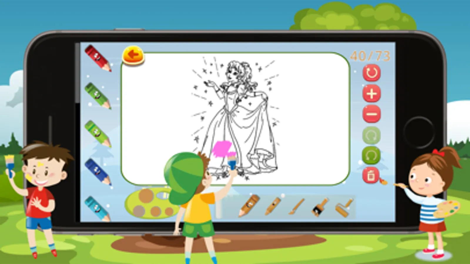 Princess Coloring Books for very easy and learning, full of impression pictures, is designed with educational content for all family ages, girls and boys (although, kids especially like it). It is suitable for both Phone and Table.