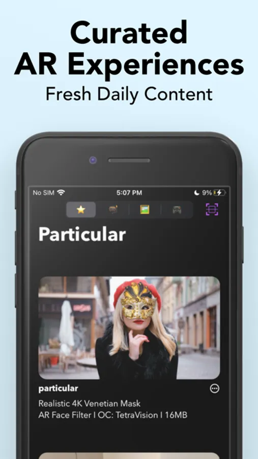 Experience fantastic and exclusive 4K face filters, you will not find elsewhere. Record amazing videos and share them directly on your social media like Instagram, Twitter, byte, TikTok for that “WOW” effect. You have never seen realistic face filters like the ones you will find in Particular Augmented Reality.