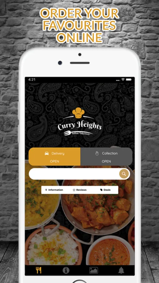 Order your favourite Curry Heights food online using our new app. With a delivery option available our easy to use system allows you to order and pay for your food from our full menu, all online and at your convenience from the comfort of your home. Alternatively, if you want to collect your order then you can do that too! You can also register for an account on the app, which will speed up future orders as well as allow you to reorder your favourite food easily. You can also receive exclusive offers and updates direct from us.