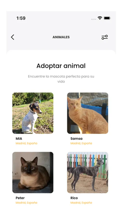 · Protectoras: dónde podrás consultar los refugios y asociaciones cercanos a ti, ver qué animales hay en adopción, y quizás animarte a ayudar.
