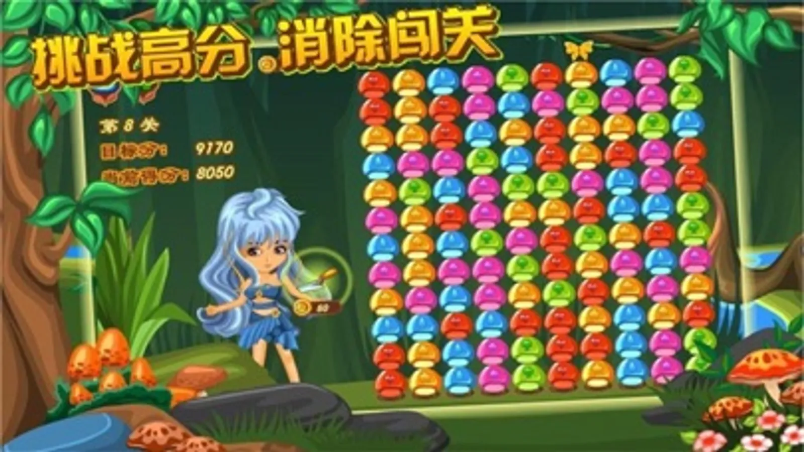 《巧取精灵菇--消除救精灵》是一款消除和换装玩法相结合的休闲游戏。美丽的精灵被困在丛林中一处神秘的花园里,用你的智慧尽可能消除所有的精灵菇,解救精灵。被解救的精灵还会助你一臂之力,一同解救她的同伴。游戏画面精美可爱,小小的精灵菇闪烁着神秘的光芒,你还可以用你赢来的金币去精灵园帮助精灵姑娘换装,快来下载试玩吧~