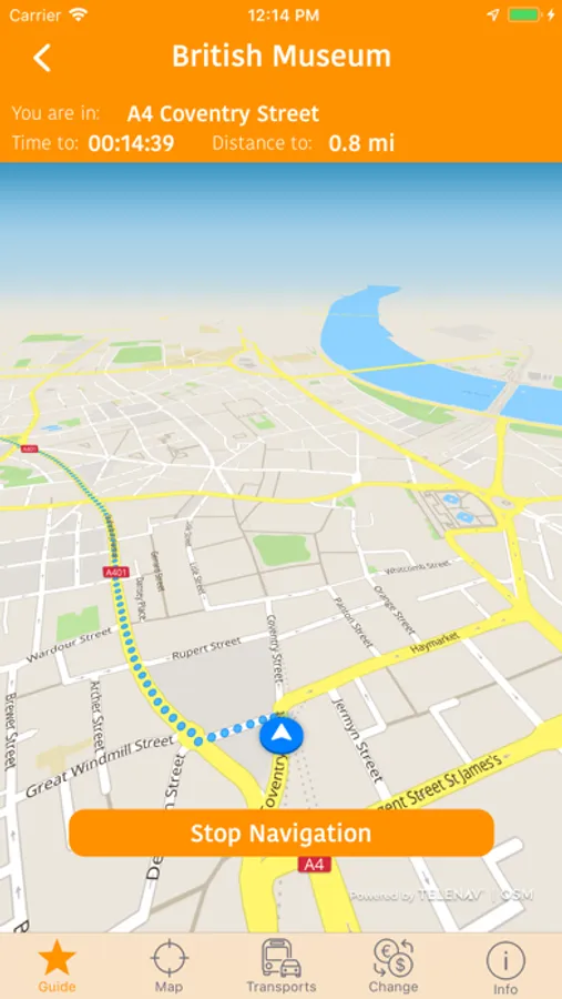 The use of the navigator can easily download the battery of your phone. Use it carefully.