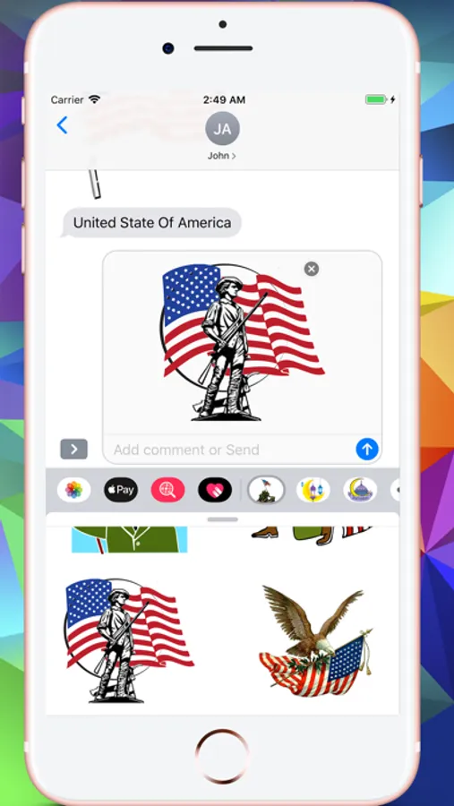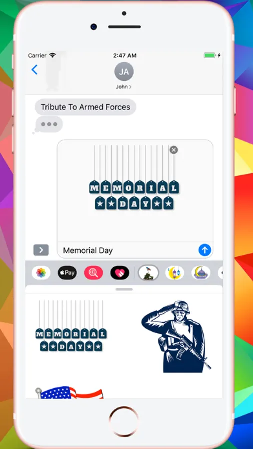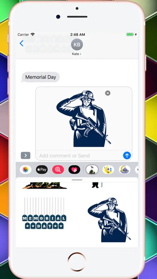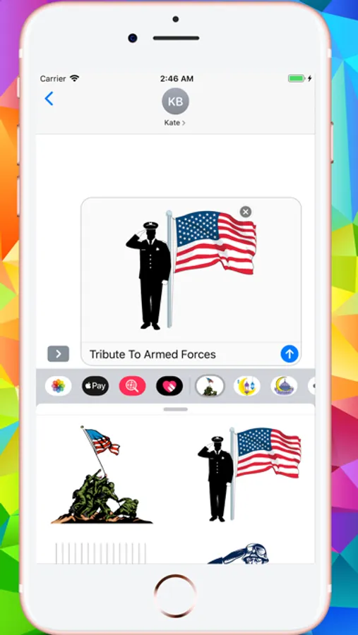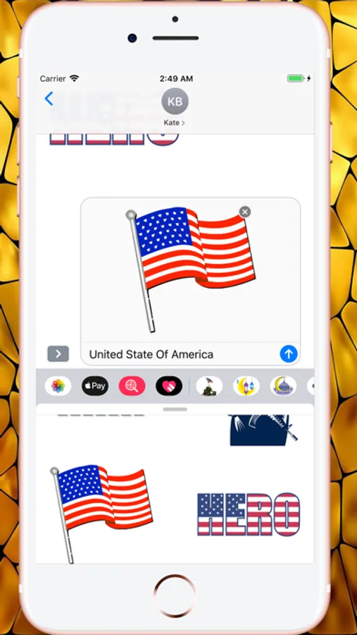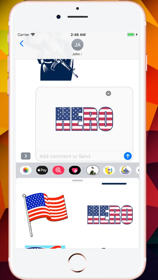 • Use stickers in chat—Tap to send, or touch and hold to put stickers on top of a bubble, other stickers, photos, and videos.