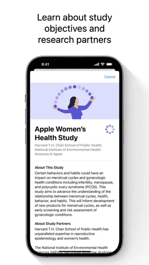 1. Join the Apple Women’s Health Study, conducted in partnership with the Harvard T.H. Chan School of Public Health and National Institue of Health Sciences to help advance the understanding of menstrual cycles and health conditions such as infertility, osteoporosis, and menopause.