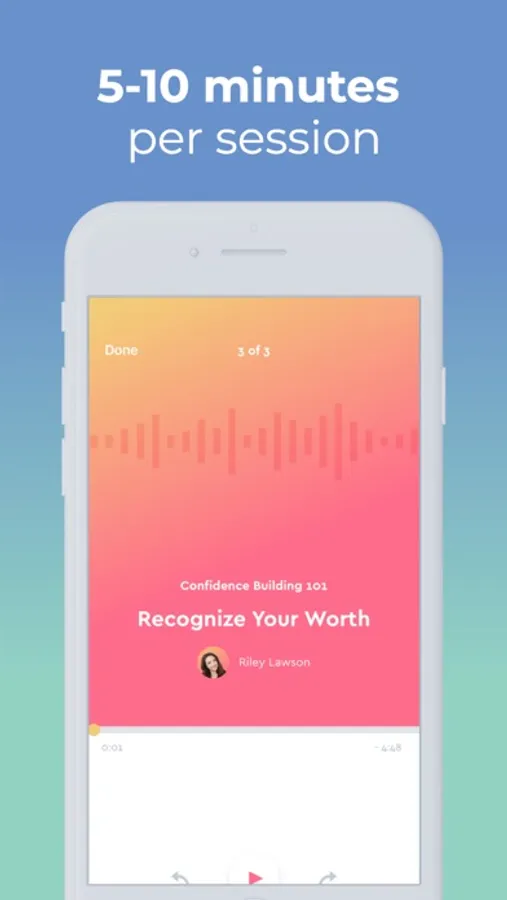 • Bite-sized guided sessions to fit into your busy schedule. Only 5 minutes per day.