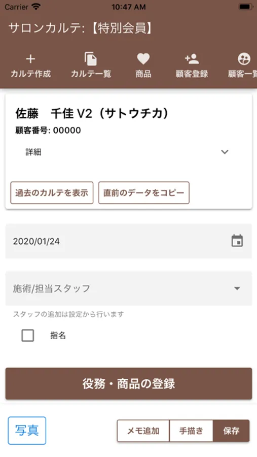 お客様の施術履歴を管理するためのカルテシステムです。