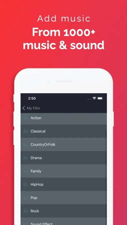 Music - Access and add varieties of music on your video.