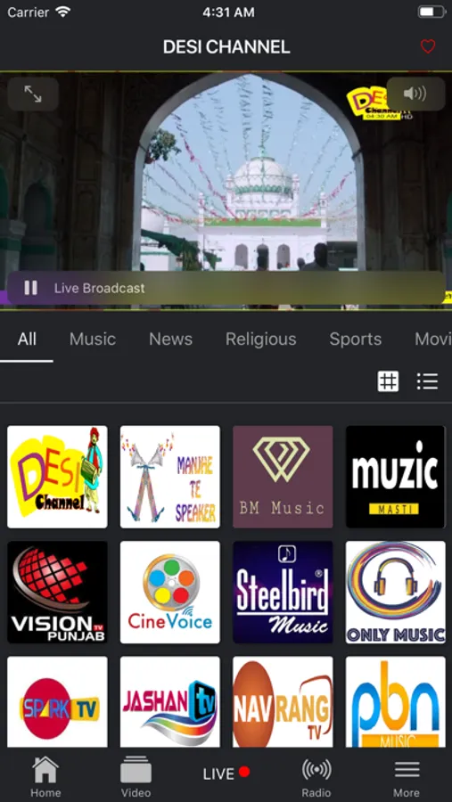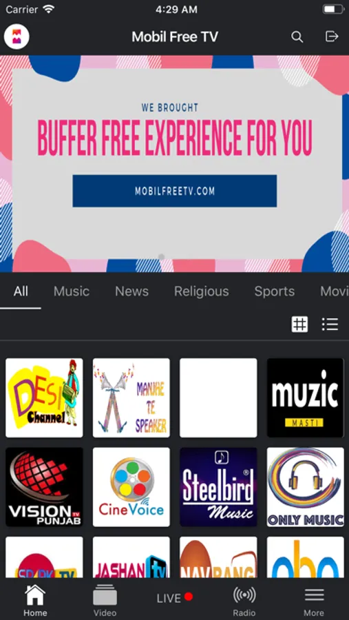 Watch Live TV Shows of different categories, VOD and play Radio on Mobil Free TV.