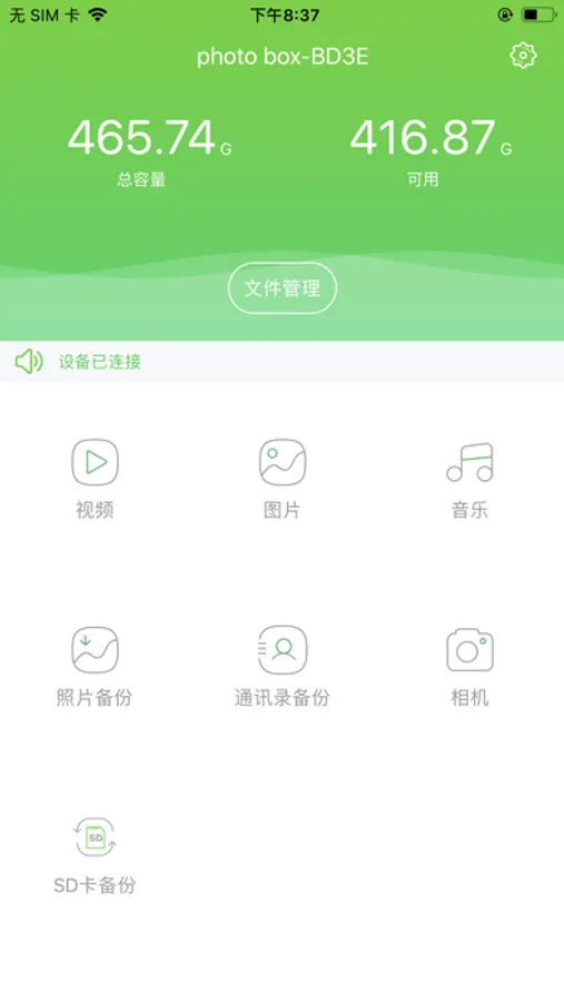 3、 SD/TF一键备份: 一键将单反相机或无人机拍摄的高清视频SD/TF全部备份到私人云盘中。可识别各种多种格式的SD/TF卡。