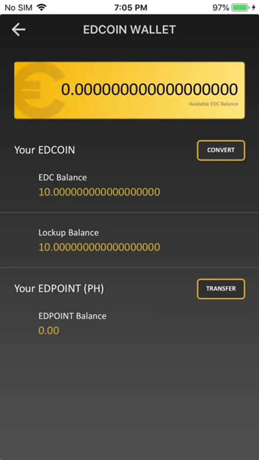 a. Viewing of wallet - Here is where the user sees the EDCOIN wallet balance and EDPOINTS balance