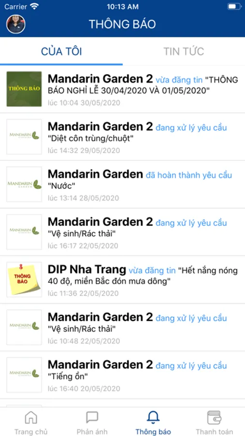 - Nhận các thông báo, tin tức khuyến mãi tức thời từ BQL.