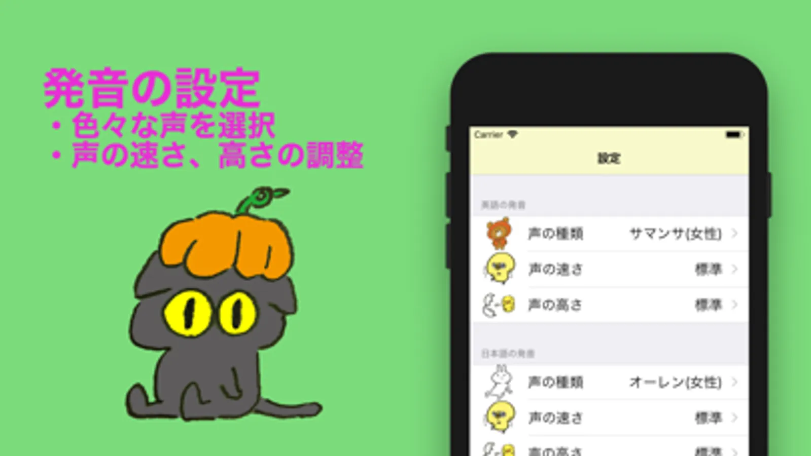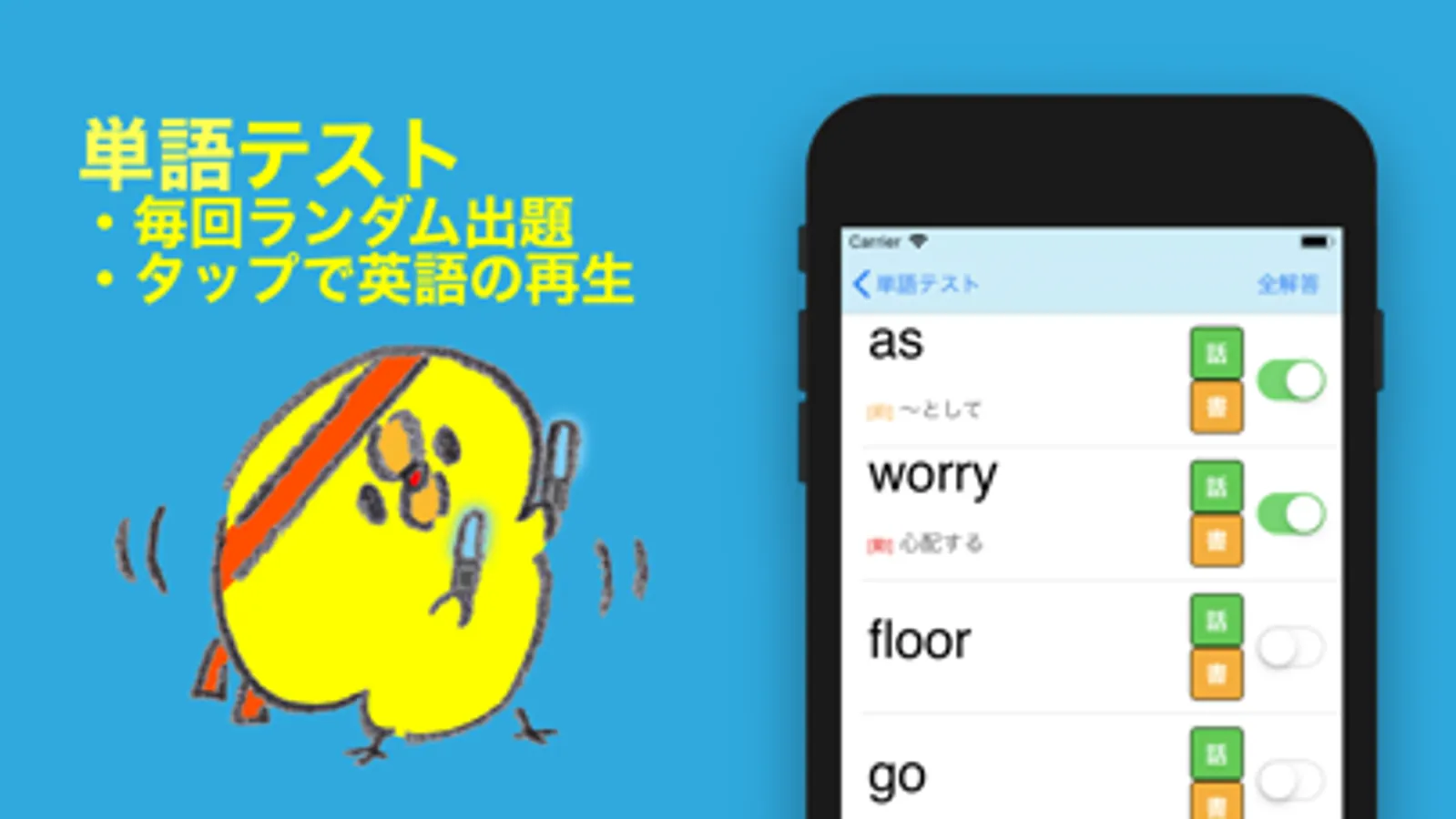 ・ You can select 3 modes: Japanese to English, English to Japanese, and Listening (voice to English).
